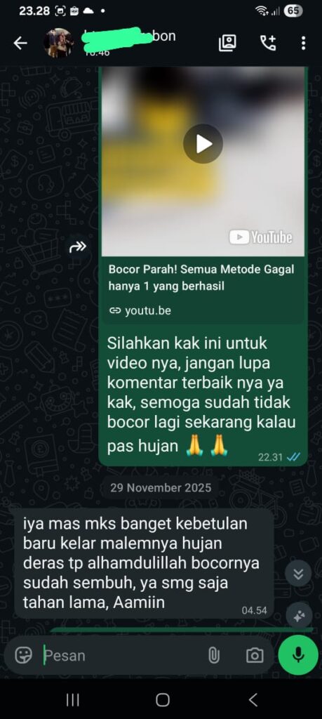 Tim kami juga siap melayani Jasa pelapis anti bocor yang siap merambah ke Pulau Jawa dengan bekal pengalaman dan profesional
